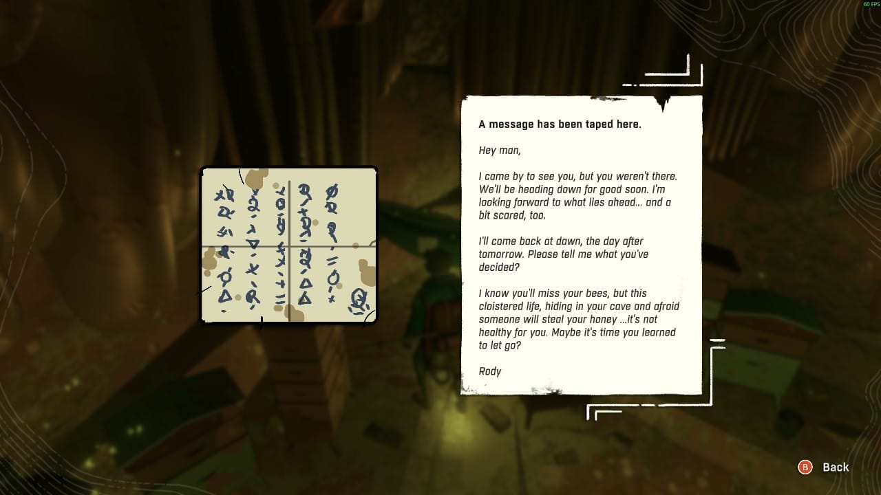 I originally thought of this tension between player and character, over who has the ability to exert more agency over the proceedings of the game, as a tug of war. Cairn shows this relationship more as a collaboration. Aava’s commentary on my decisions encourage or warn me of impending danger. Her screams of frustration at a fall matches my own grunts. Her exclamation of wonder at the things she is finding and reading are similarly reflected in me. I care for her like my own daughter, keeping her supplied and directing her when to eat and drink and rest. I watch her interactions and wish for a more fulfilling life than the one she is currently pursuing on this mountain, and the deadly end I know awaits her at its conclusion. I also know that it is her decision to make. I can only help her along.[2]