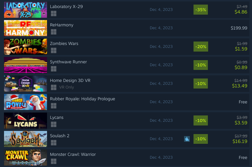 Comments such as the above are pretty common when it comes to complaints about Steam, and over time, PlayStation, Xbox, and Nintendo’s digital storefronts being inundated with “cheap shovelware trash.” What actually determines whether a singular game is “cheap shovelware trash” is a subjective determination. There are oddities, such as the infamous saga of Sterling v. Digital Homicide, but is a significant portion of Steam’s userbase being tricked into purchasing games such as those? There were 55 games listed as released on November 23, 2023, over a week ago as of the time of this writing. Of those, only 5 have more than 30 reviews, a decent indicator that more than 1,000 people have purchased/played it. Sand:box (267), Cyber Avenger (50), Easy Red 2: Ardennes 1940 & 1944 (47), Retro Commander (181), and Metal Breaker (30). A large majority of releases had none, or less than five, reviews listed, and a very small, or simply nonexistent, user base. Does any significantly sized group browse Steam by their “All Products sorted by Release Date” page? And for those who do, how many are engaging with anything beyond those that have been assigned the thumbs up icon, indicating mostly positive reviews? An icon which can easily be hovered over to view a pop up of exactly how many reviews have been posted for said title.
